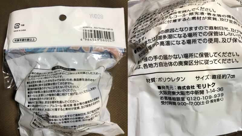 - モリトク PUソフト スポーツボール(M-06004)=110円